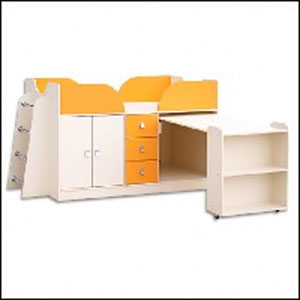 Мебель для детской комнаты должна быть функциональной, безопасной и удобной. Мебельная фабрика «Диана Руссо» учитывала эти факторы для разработки моделей мебели и выпустила такие серии как «Кроха» и «Непоседа». Основной цвет был выбран дуб млечный, это светлый и приятный глазу оттенок, который можно сочетать с яркими цветами, такими как лайм, манго и голубой. Модели могут быть выполнены как в комбинированном, так и однотонном варианте цветовой гаммы. Габаритные размеры: -длина: 220 см -ширина: 104 см -ширина с разложенным столом: 174 см -высота : 109 см -размер спального места: 190х80см