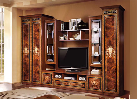 Стенка Карина-3 классического итальянского дизайна в декоре «орех», она несомненно украсит гостиную вашей квартиры или загородного дома. Фасадная часть имитирует инкрустацию по дереву методом шелкографии; двери изготовлены в Италии. Стёкла витрин украшены витражом с фигурным матированием.
