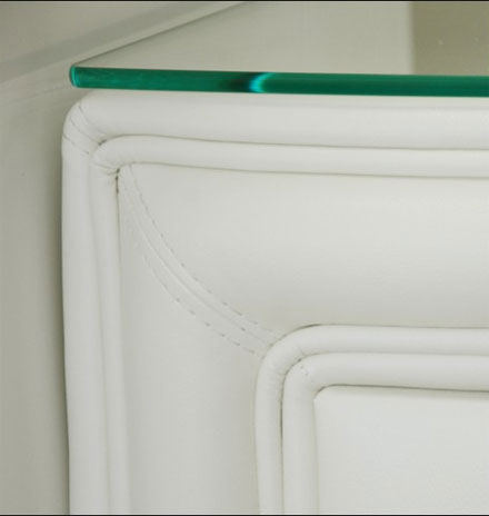 Мягкая прикроватная тумба может выполняться из эластичной экокожи на тканевой основе и из однотонных тканей на флоковой, велюровой и бархатной основах. Тумба может комплектоваться стеклом (матовое, прозрачное, тёмно-коричневое).